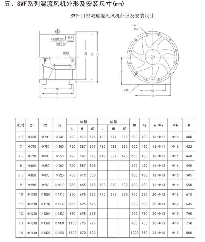 四、SWF-V(SJG)系列混流風(fēng)機(jī)