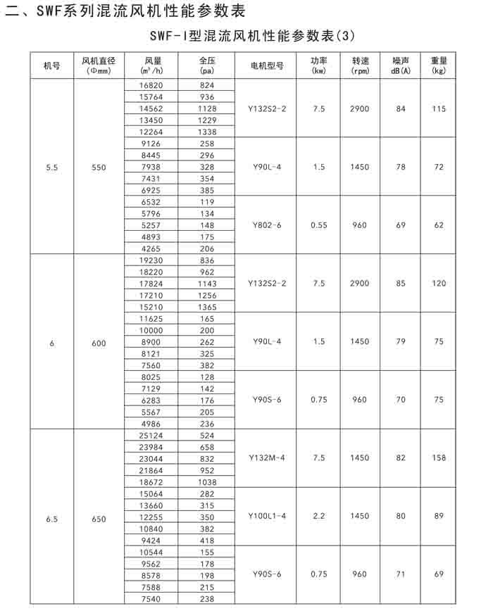 二、SWF(HLF、GXF)-I、II、H 系列高效混流風(fēng)機(jī)