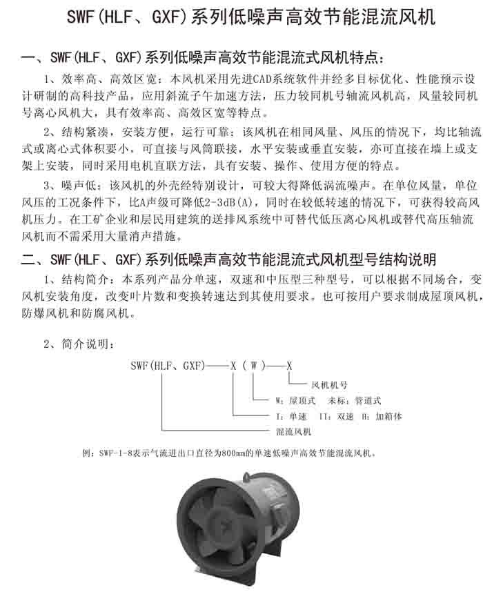 二、SWF(HLF、GXF)-I、II、H 系列高效混流風(fēng)機(jī)