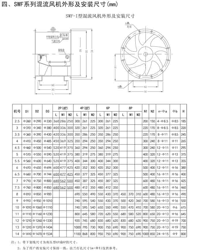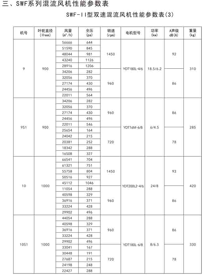三、SWF-IV(HL3-2A)、HTF-PY(PYHL-14A)系列節(jié)能混流風(fēng)機(jī)