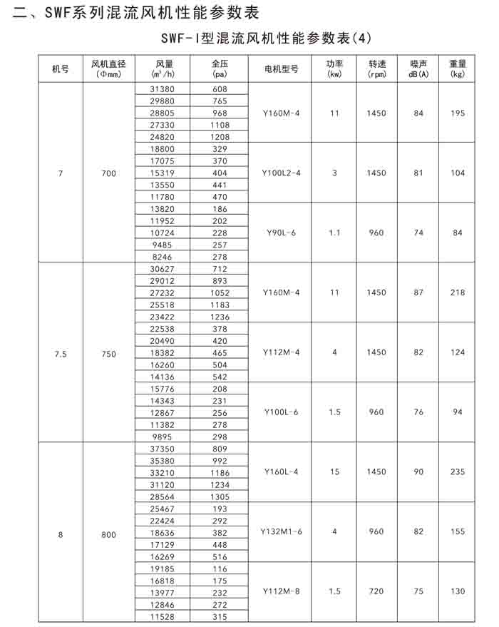 四、SWF-V(SJG)系列混流風(fēng)機(jī)